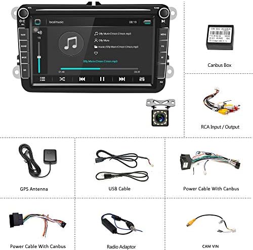 Car Radio Android GPS Navigation Stereo for VW Volkswagen Passat Golf MK5 Jetta Tiguan T5 Skoda Seat Polo Touran Double Din Car Stereo with Bluetooth 8″ Touch Screen FM WIFI SWC 1G 16G + Backup Camera