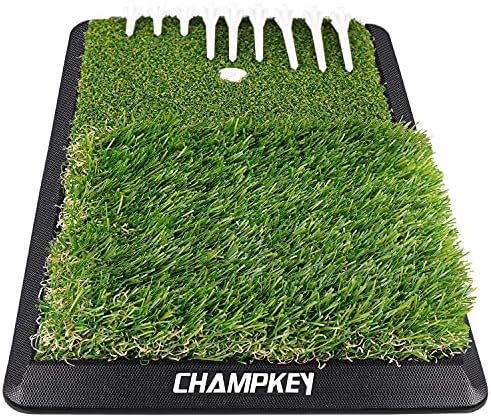 Champkey Dual-Turf Golf Hitting Mat | Come with 9 Golf Tees & 1 Rubber Tee | Heavy Duty Rubber Backing Golf Practice Mat Ideal for Indoor & Outdoor Training (S(8.5″ x 17″))