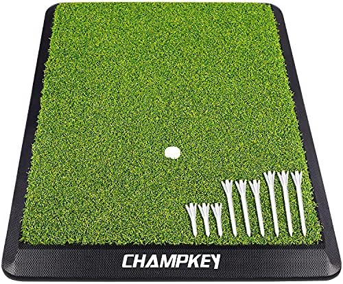 Champkey Premium Synthetic Turf Golf Hitting Mat | Heavy Duty Rubber Base Golf Practice Mat | Come with 1 Rubber Tee and 9 Plastic Tees