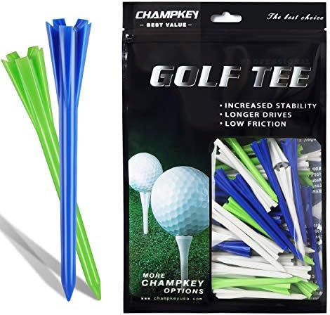 Champkey SDP Hybrid Plastic Golf Tees Pack of 120 (1-1/2″, 2-3/4″ & 3-1/4″ Available) – Reduce Friction & Side Spin,More Durable & Stable Golf Plastic Tees