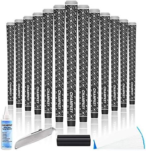 Champkey X Rubber Golf Grips Set of 13 – Choose Between 13 Grips with 15 Tapes and 13 Grips with All Repair Kits