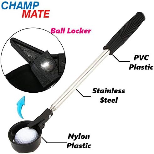 Champmate Golf Ball Retriever Pick Up Scoop Stainless Steel Shaft Tool