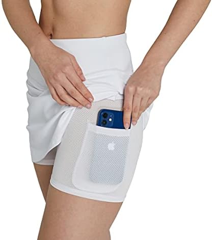 POCKETS SKORT: Two side pockets on each leg of mesh under shorts are really convenient to stash balls or cards without worries. One phone pocket on waistline is big enough for carrying phone. One hidden pocket at front of waistband for stowing your small essentials.