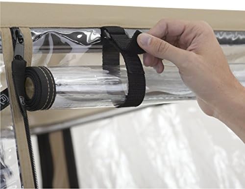 Super-clear window material with heavy-duty polyester walls, reflective piping, and padded handle storage duffle bag included