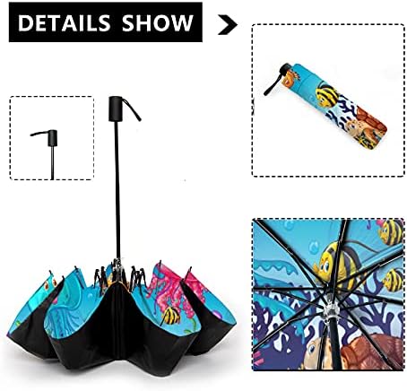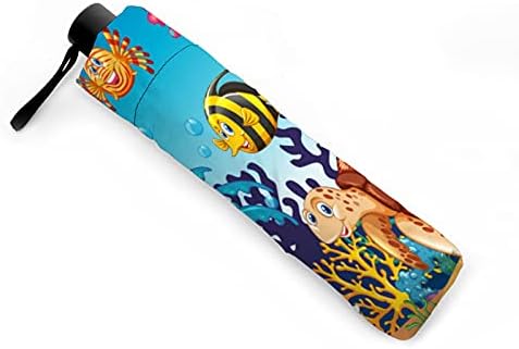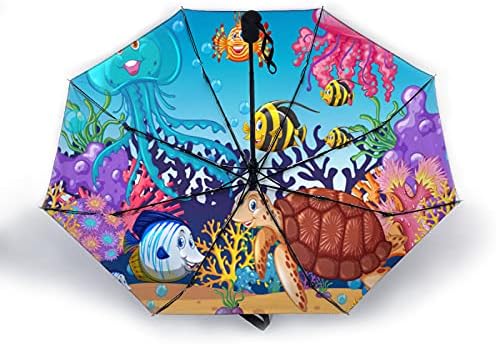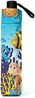 Compact Umbrella Beautiful Underwater Cute fish, turtles, jellyfish Auto Open Close Travel Sun Golf Folding Umbrellas Windproof Lightweight For Women Men Kids Girls Parasol With Black Anti-Uv Coating