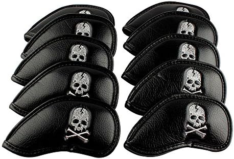 Craftsman Golf 10pcs Black Skull Thick Pu Synthetic Leather Golf Iron Head Covers Set Headcover Skull Fit All Brands Callaway, Ping, Taylormade, Cobra, Etc.