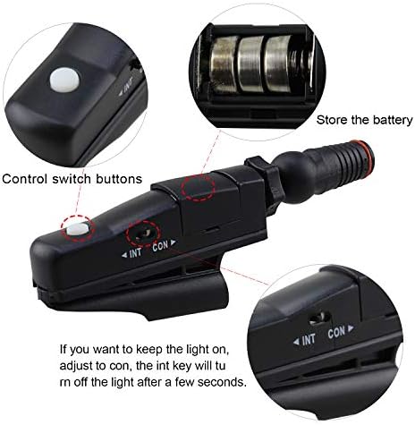 In the side panel of the putting aid, there is a little switch indicate modes of light-time. In”INT-Intermittent”mode, the light beam last for 10 seconds only. It is a power-save device for an advanced golfer or a pro . In”CON-Continuous”mode. the light beam is always lighted up unless being switched to”INT”mode.