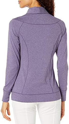 The shoreline half-zip is built from 92 percent polyester and 8 percent spandex fabrication to offer the softest, most comfortable feel inside and out. Ladies enjoy a unique asymmetrical placket with a shawl collar, cover stitching at the seams and c and ribbed pennant at the back yoke all in a brushed melange stripe body.