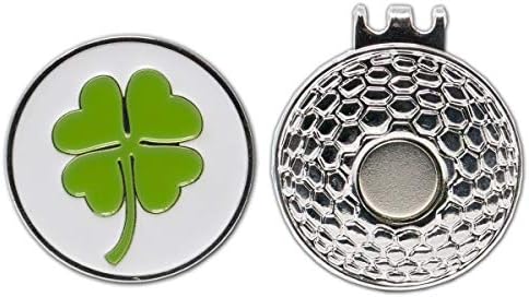 Da Vinci magnetic golf hat clip with one inch embossed metal golf ball marker as shown. The hat clip is made of metal and has a strong magnet in the center that can hold the metal ball marker. The ball markers are 1 inch in diameter and made of metal with an embossed soft enamel design as shown. You can use the ball markers with hat clips, divot tools, poker chip markers, or other magnetic golf accessories.