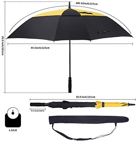 Extra large canopy and arc size is 62 inches, the cover open diameter 44.5 inches. Umbrella length is 39.9 inches. large size umbrella, but it only weight 1.55 lbs, use available both for men and women.