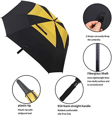 Square shaped double canopy windproof design(air vented),durable fiberglass ribs and a sturdy fiberglass shaft offering a robust windproof system for maximum frame flexibility in stormy weather.