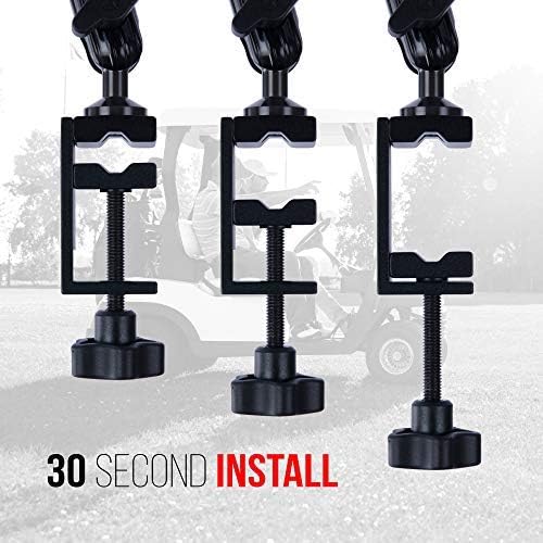 TOP GOLF CART ACCESSORY – Mount it on your cart and use your favorite golf GPS app. Keep score with your go-to golf app while keeping your hands free. Empty your cupholder for the important stuff. Windshield up or down, the mount holds securely. Whether it’s granny or Mario Andretti driving, rest assured that your phone is securely held. Whether it’s holding your phone onto your golf cart, pole, bag, bench, table or anything on the course, you can be sure that your device is safe and secure.