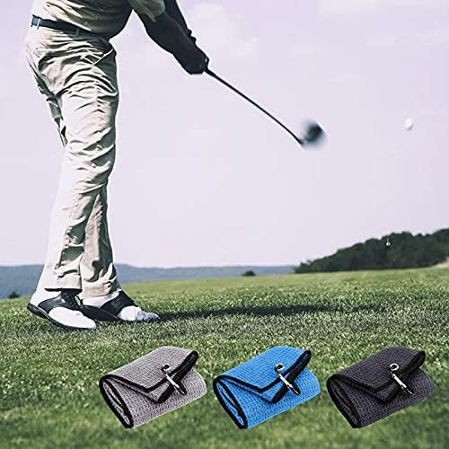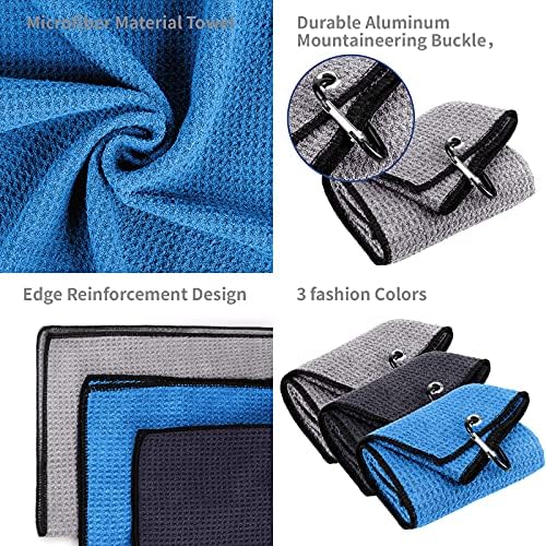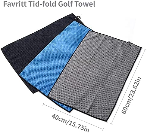 Favritt 3 Pack Tri-fold Golf Towel,Premium Microfiber Fabric Waffle Pattern Towel,Heavy Duty Carabiner Clip,Golf Accessories for Men(3 Colors,3Pcs)