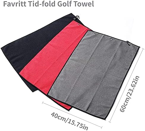 Favritt 3 Pack Tri-fold Golf Towel,Premium Microfiber Fabric Waffle Pattern Towel,Heavy Duty Carabiner Clip,Golf Accessories for Men,Women,Children(3 Colors,3Pcs)