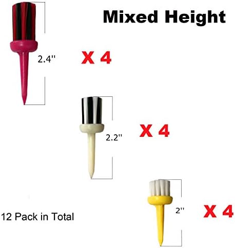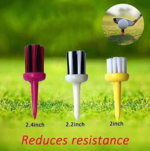 FINGER TEN Brush Golf Tees Type Plastic Unbreakable 2 2.2 2.4 inch 6/12 Pack Low Resistance More Distance Consistent Height Driver Training Tee Yellow Pink White for Men Women