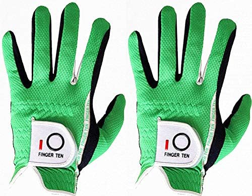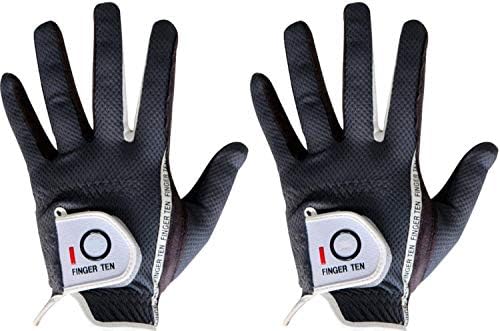 FINGER TEN Men’s Golf Glove Rain Grip Pair Both Hand or 2 Pack Left Right Hand, Hot Wet Weather No Sweat, Black Gray Green, Fit Size Small Medium Large XL