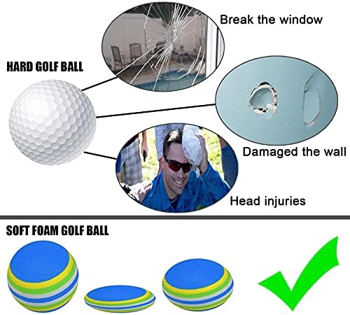 【SAFETY】Due to the light weight of the foam golf balls (8 g), furniture, glass windows and animals are not injured. Ideal for approach shot and full shot exercises. So you can practice safely at home, indoors or outdoors.