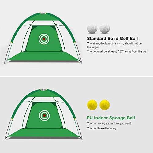 Tips: Please use the sponge ball,it can practice for hours hitting thousands of balls.If you use solid balls, it will reduce the life of the golf net. Because your hitting strength will break the net.There may be 2 solid balls or 3 PU balls in your package