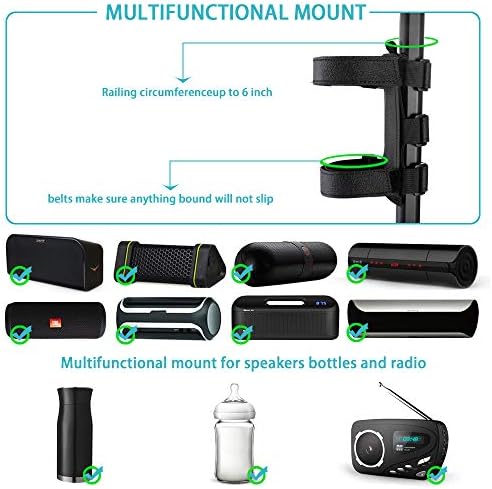 MULTIFUNCTIONAL SPEAKER MOUNT: Quickly attaches bluetooth speakers to any rail on the golf cart, boat, UTV, bike, stroller, walking cart, trolley, beach umbrella, electric scooter, etc