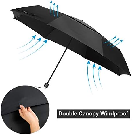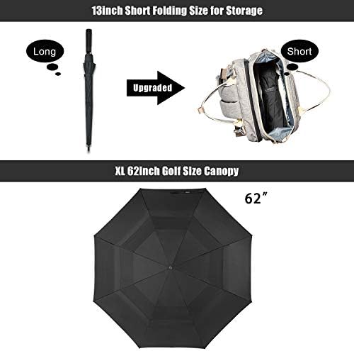 G4Free 62 Inch Large Folding Umbrella XL Compact Golf Umbrella Double Canopy (Black)