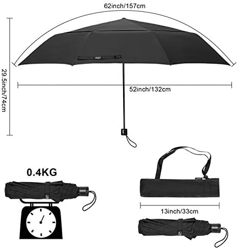 Upgraded 62 Inch Large Size. Compared to those 62 inch golf umbrella, this G4Free large umbrella folded to 13 inch but provides the best coverage for 2 people with 62 inch canopy, 52 inch in diameter. Compact folding size and Lightweight (0.9lb) to fit well in your tote bag, suitcase or backpack.