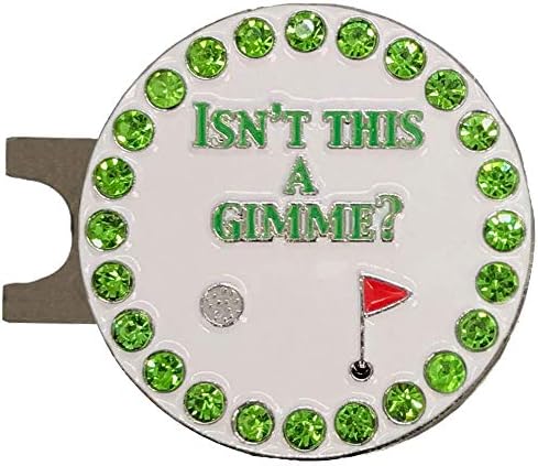 YOUR PARTNER MIGHT BE BORING, BUT YOUR GEAR DOESN’T HAVE TO BE – This bling Isn’t This A Gimme (White) golf ball marker comes on a magnetic hat clip. It features a golf ball, a red flag, and text that says, “Isn’t this a gimme?”