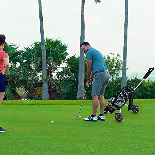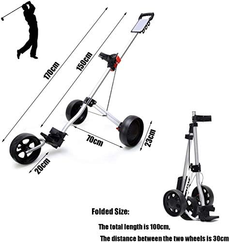 Folding Lightweight Golf Cart: This collapsible cart with wheels is built with a super strong, lightweight, and sturdy aluminum frame that makes the golf pull cart easily maneuverable. It also has an attractive finish that will coordinate with any golf bag.Ideal for, space-conscious golfers looking for an easy-to-fold push trolley bursting with features.