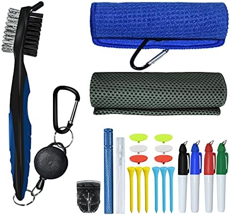 Golf Club Cleaner, Golf Brush and Groove Cleaner, Magnetic Golf Towel with Clip, Sport Cooling Towel, Golf Club Groove Cleaning Brush , 6pcs Golf tees 6 pcs Golf Markers and Golf Line Drawing Device