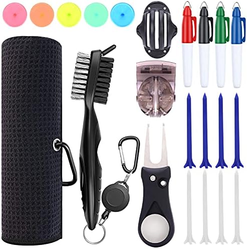 Golf Club Cleaning Kit, 22pcs Golf Accessories, Microfiber Golf Towel with Clip, Golf Brush Groove Cleaner, Foldable Magnetic Divot Tool, Golf Ball tees and Position Markers, Golf Ball Marker Tools
