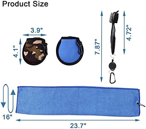 Golf Club Towels, Golf Club Cleaning Kit, Retractable Golf Club Cleaning Brushes, 2 Golf Ball Cleaning Pouch, for Cleaning Club Groove, Golf Heads, Golf Ball, Golf Accessories for Men