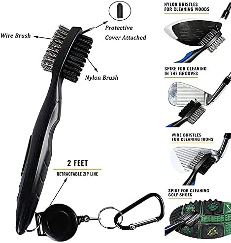 Comfortable golf club cleaning brush: Extremely Durable Body and Ergonomic Comfortable Handle for Any Conditions,with Brush protection shell, nylon bristles are used to clean dust,Wire bristles can quickly and effectively clean the irons on the fairway.