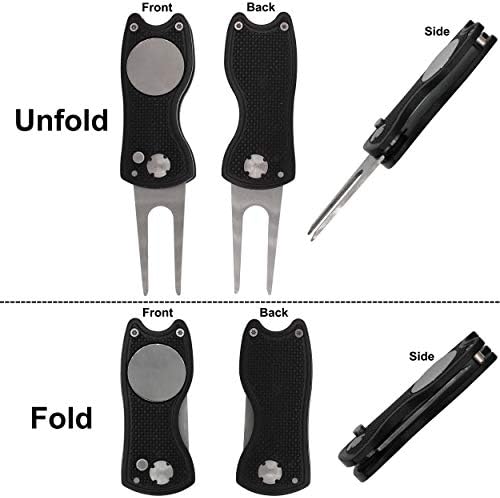 Golf Divot Repair Tool with Magnetic Ball Marker, Metal and Foldable Design