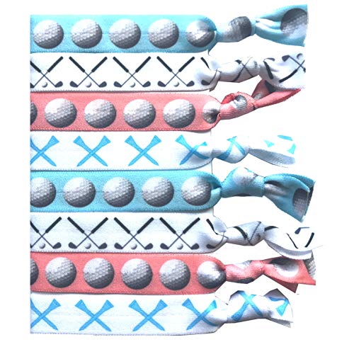 Golf Gift, 8 piece Hair Elastic Set – Accessories for Women, Players, Girls, High School Teams, Coaches, Leagues, Opponents, Partners, Tournaments -MADE IN THE USA