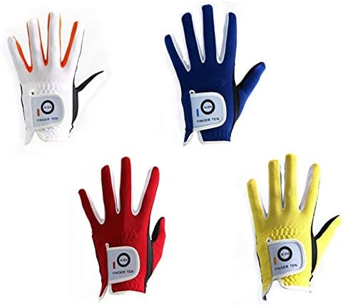 The Finger Ten Junior kids Dura Feel White Blue Red Yellow Golf Gloves Has the most enhanced synthetic leather for a great feel, grip and durability.