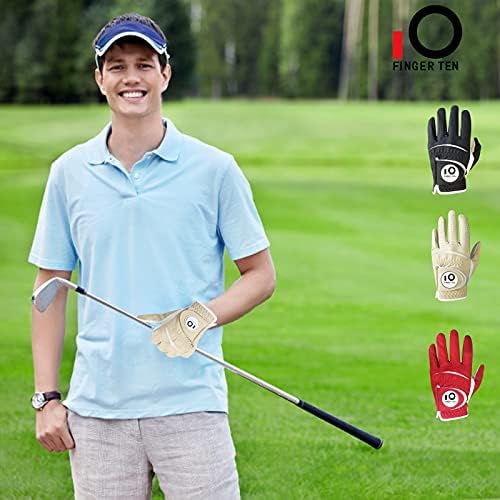 The Finger Ten RainGrip Golf Gloves feature QuikDry knit palm material along with the 3D performance back.-Moisture-wicking properties ensure comfort and control- The Suedemark microfiber palm material provides unmatched grip in wet or humid conditions, conforming to both your hand and club.- Finger Ten RainGrip Golf Glove of Flexibility for Your Best Swing!