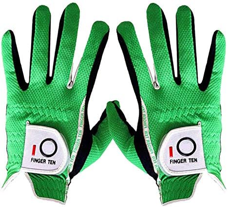 Golf Gloves Men Pair Left and Right Both Hand Rain Grip Lh Rh Weathersof No Sweat All Weather Grips Soft Comfortable Gray Green Size Small Medium ML Large XL