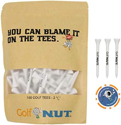 Pack of 100 white Golf Nut tees with bonus “Certified Golf Nut” Poker Chip Ball Marker. Perfect gift for the avid golfer aka Golf Nut!