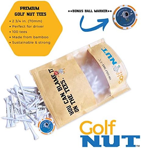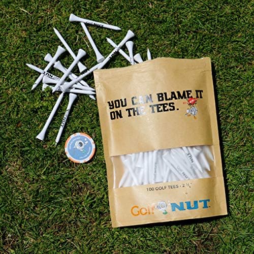 Golf Nut ‘Blame it On The Tees’ Tee Pack | 100 2-3/4 Inch Tees with Bonus Poker Chip Ball Marker