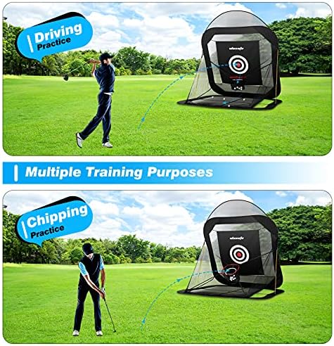 Golf Practice Nets for Backyard Driving Indoor and Outdoor Hitting Net with Chipping Target Pocket and Carry Bag Home Range Training Aids Ball Swing Golfing Accuracy Automatic Ball Return System