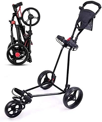 Golf Push Cart 3 Wheels Foldable Hand Cart 3 Wheel Push and Pull Cart Trolley with Score Board, Quick Open and Close Golf Pull Cart