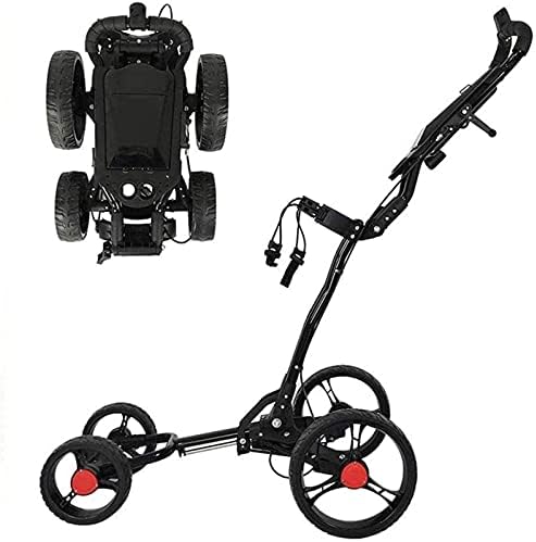 Golf Push Cart Golf Cart 4 Wheel Foldable Push Pull Golf CART with Scoreboard ONE Second to Open Close (Color : Black)