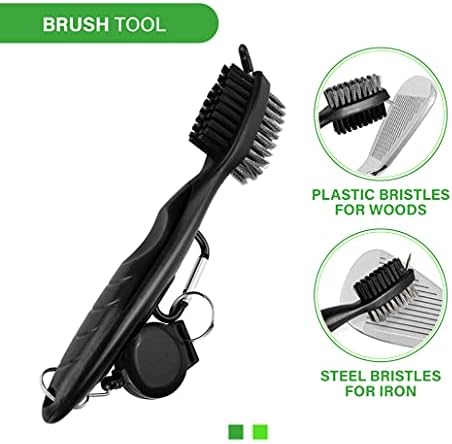 ⛳ GOLF CLUB CLEANING KIT: Everything plus more to keep your clubs and spikes clean. Club Brush with Brass bristles for cleaning irons. Soft Nylon bristles for cleaning woods. Sharp Spike for cleaning golf shoes & grooves.