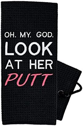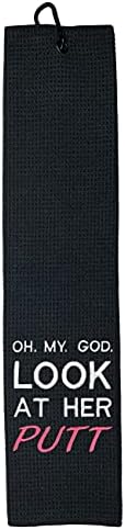 Golf Towel Store – Fun Golf Accessories for Womens Golf, Embroidered Golf Towels for Golf Bags with Clip – 100% Cotton or Waffle Microfiber Options – Oh My God Look at Her Putt