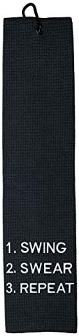 Golf Towel Store – Funny Golf Towel – Golf Gifts for Men or Women – Embroidered Golf Towels for Golf Bags with Clip – 100% Cotton or Waffle Microfiber Options – Swing Swear Repeat
