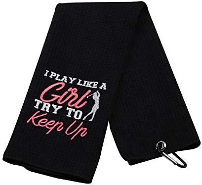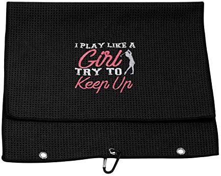 Golf Towel Women’s Golf Towel Funny Golf Towel Gift for Her I Know I Play Like A Girl So Try to Keep Up Golf Towel with Clip (Try to Keep Up)