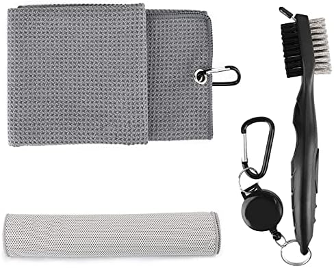 Golf Towels, Rescoto Golf Towel Golf Club Brush Sport Cooling Towel Set Microfiber Waffle Pattern Tri-fold Towel Club Groove Cleaner Brush with Clip Golf Gifts for Men Women