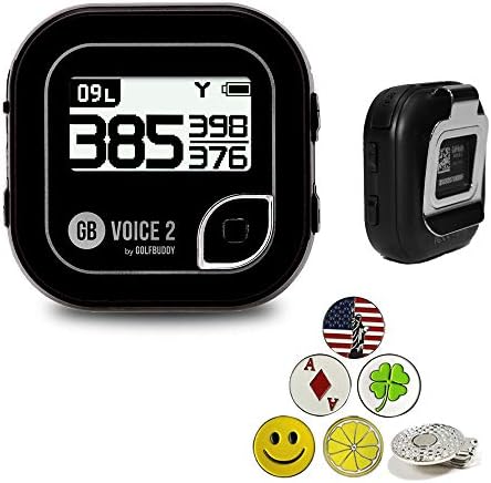 GolfBuddy Voice 2 Black Color Golf GPS/Rangefinder Bundle with 1 Magnetic Hat Clip and 5 Ball Markers
