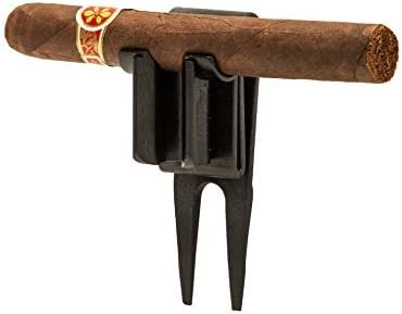 GolfJOC US Patent 4 in 1 Golf Accessory Tool – Cigar Holder, Cigar Clip, Divot Tool, Club Caddy, and Putter Holder, Black, 8 x 4.5 x 2-Inch