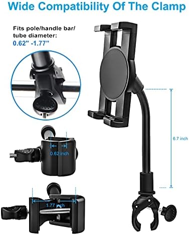 【Outstanding Safety Holder】woleyi gooseneck long arm tablet holder with flexible bendable arm and 360 degree rotation ball joint that provide optimal viewing for you. The non-slip and shake-resistant clamp base keeps your device securely on the handlebar and ensure the smooth exercise experience for you.