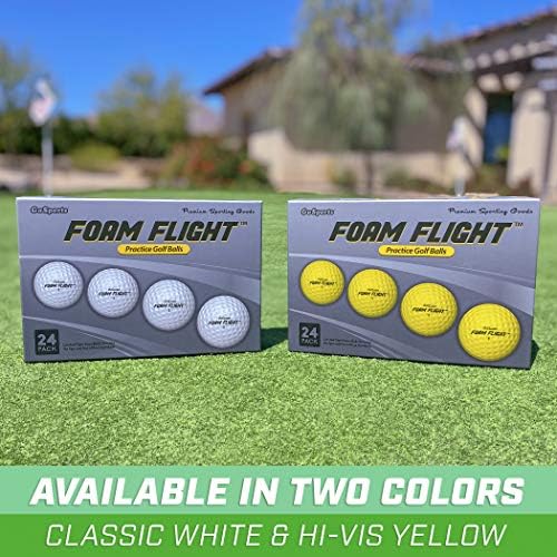 GoSports Foam Flight Practice Golf Balls – Pack of 24 Limited Flight Training Balls -Choose Between Classic White or Hi-Vis Yellow